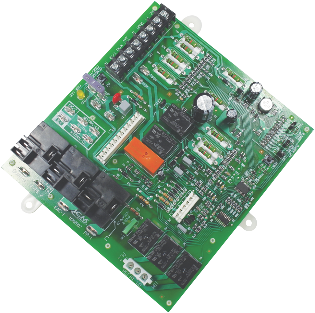 The ICM2807 is a low-cost replacement for the Carrier HK42FZ017 furnace control board, which is used to control gas valve, ignitor, blower motor, inducer, humidifier and air cleaner- Microprocessor-based precision