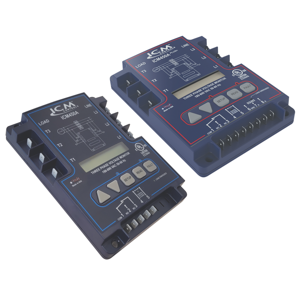 For more than two decades, ICM has been an innovator and a recognized leader in the manufacturer of line voltage controls designed to protect your most valuable equipment. The ICM450A and ICM450A PLUS+ are the latest 3-phase offerings, providing superior motor protection from premature failure and damage caused by common voltage faults such as phase unbalance, over/under voltage, phase loss, and phase reversal.