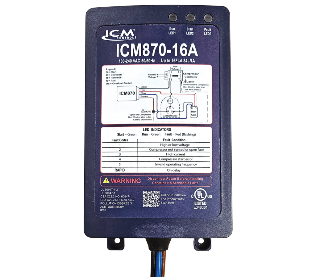 ICM870-16A: For use with a Compressor Load Amp Rating (RLA) of 9.1-16A Maximum